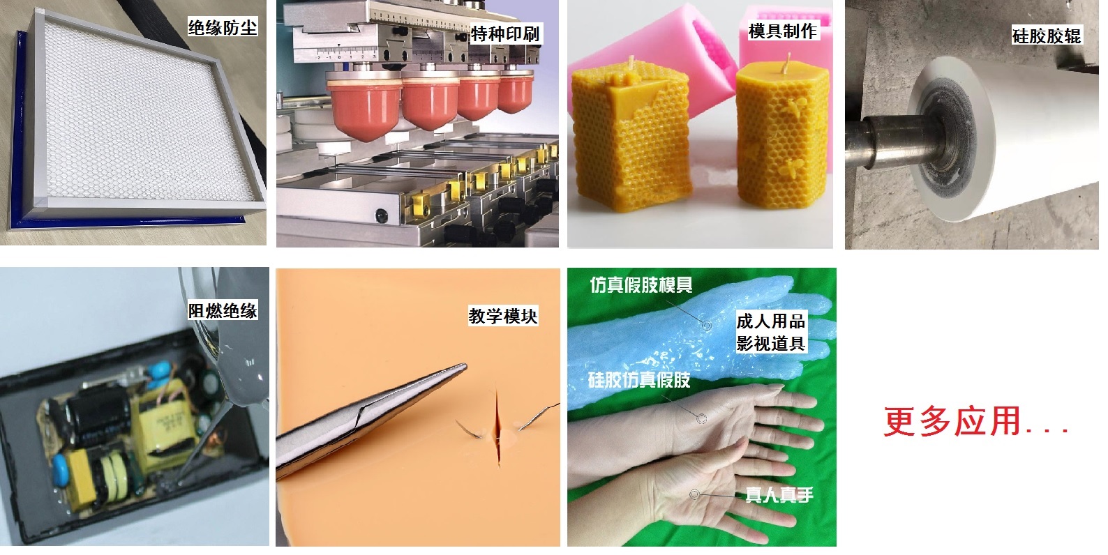 液體硅膠又叫液態硅膠,常應用于制作硅膠制品、模具、移印膠頭、膠輥、灌封絕緣、成年人用具、硅膠假肢模型以及科研特殊領域。具有耐臭氧、耐酸堿腐蝕,因其良好的物理性能和可操作性,市場遍布面非常廣。